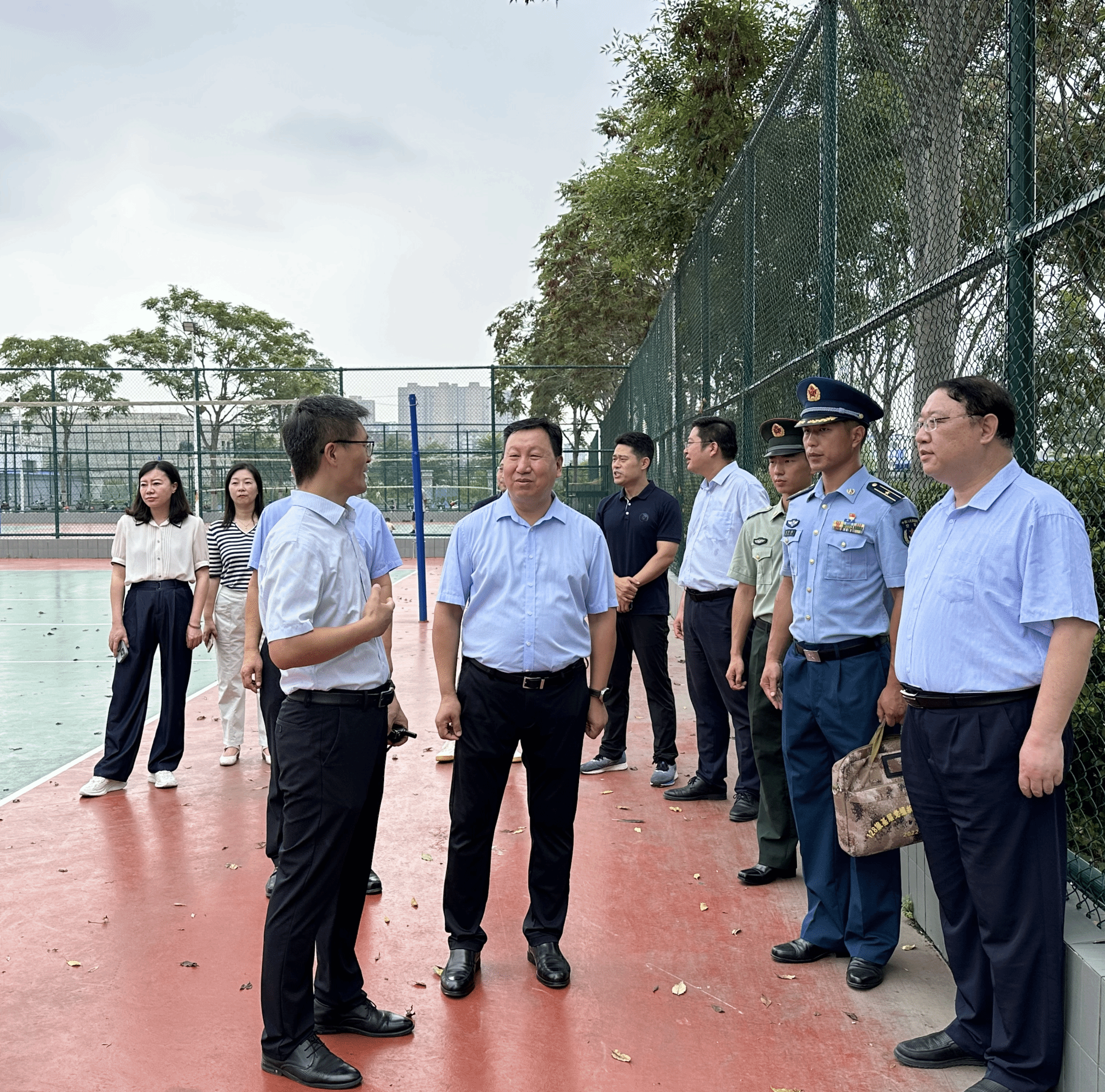 为全面了解学生的军训情况,鼓励同学们坚定理想信念、提升身体素质、顺利完成军训任务,8月19日,永利集团304am登录执行院长、党委副书记王刚,党委副书记宋永鹏,团委书记张丽来到训练场,看望并亲切慰问2022级军训学生。