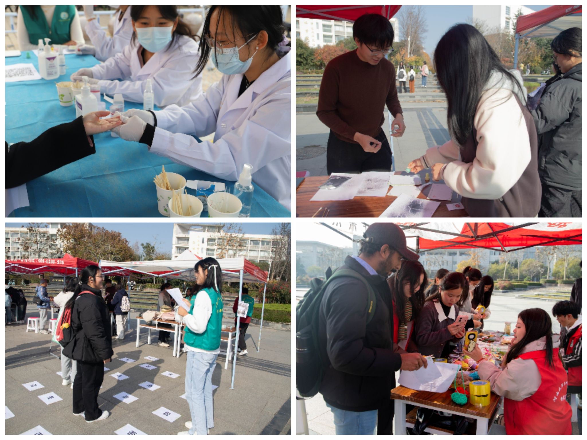 活动现场展示了哺乳动物、鸟类、鱼类等动物标本以及琥珀成品,为师生提供了近距离接触野生动物的机会,志愿者现场结合各类动物的生活习性和生物学特点,讲解各类标本的制作过程;结合趣味实验和互动游戏,生动展示出生物科学实验的奇妙与乐趣,激发参与者对生命奥秘的好奇与探索;活动为师生提供亲手制作叶脉书签、植物拓印作品和植物面具的机会,充分利用大自然提供的植物来源素材,发挥师生DIY创造能力,在制作过程中提高师生的环保理念;结合血型检验,普及血型的有关知识和遗传规律,提高师生自我健康认知,树立正确的健康意识。活动现场气氛热烈,参加活动的师生情绪高涨,主动与志愿者交流有关生物多样性、生态保护等方面的问题。