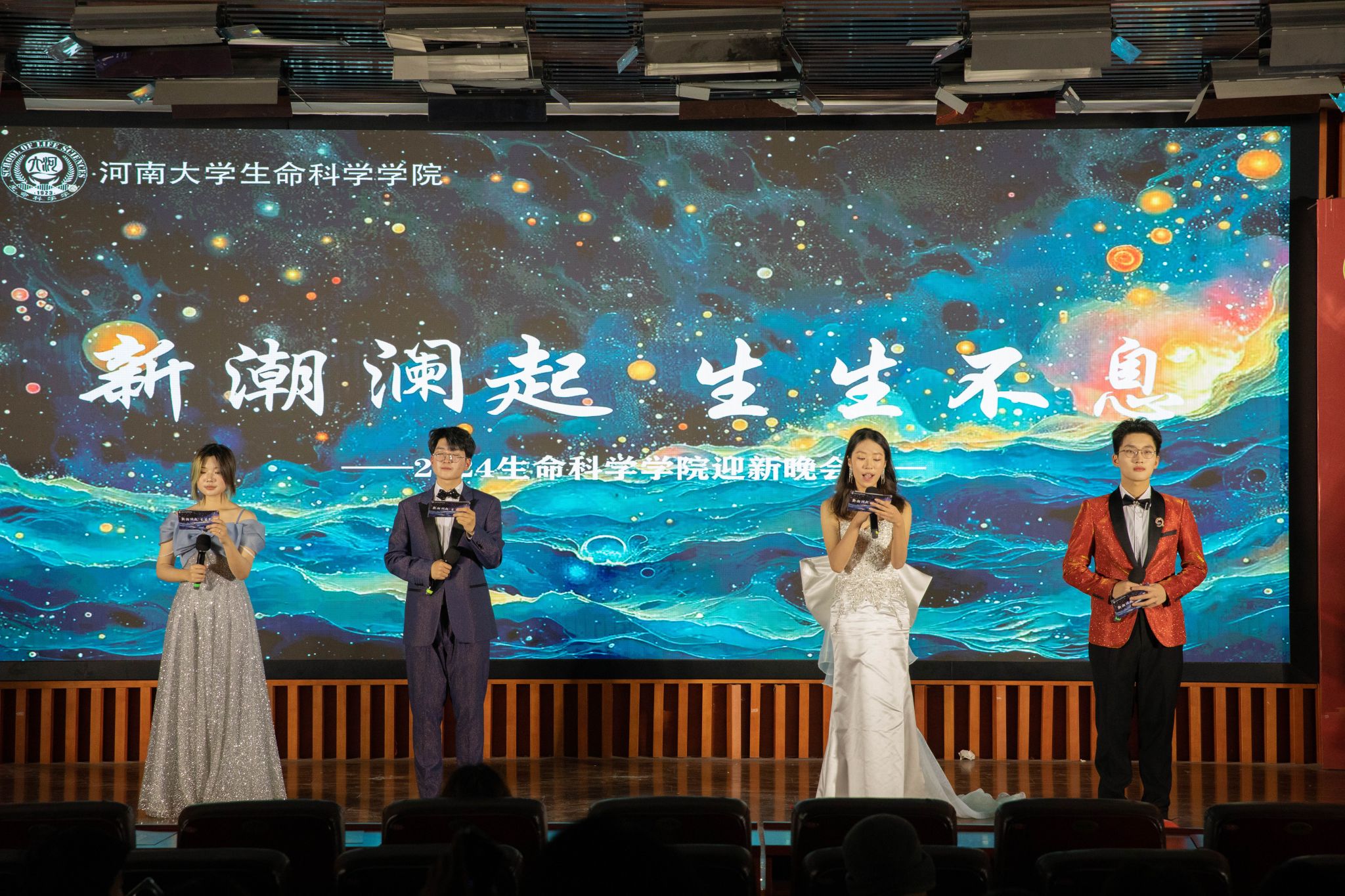 在辞旧迎新之际,为帮助新生们更好地展示自我、融入集体,展现校园文化的蓬勃生机与无限活力,12月22日晚上,永利集团304am登录在圆形报告厅举办2024年“新潮澜起 生生不息”迎新晚会暨2025年元旦晚会。各类节目轮番上演,涵盖歌舞、相声、武术、朗诵等多种艺术形式,为师生们带来精彩的视听盛宴,接下来让我们沉浸式观看体验吧!