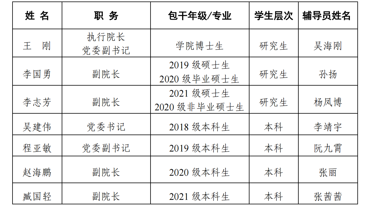 为深入贯彻落实全省教育系统疫情防控工作要求,认真落实相关安排部署,切实保障师生健康安全,进一步强化责任担当,构建多维疫情防控期间学生管理工作体系,永利集团304am登录在推行“网格化管理”的基础上,压实主体责任,推行领导班子成员包干到年级制度。具体包干安排如下: