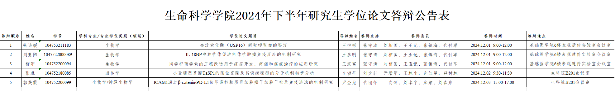 永利集团304am登录2024年下半年研究生学位论文答辩公告表