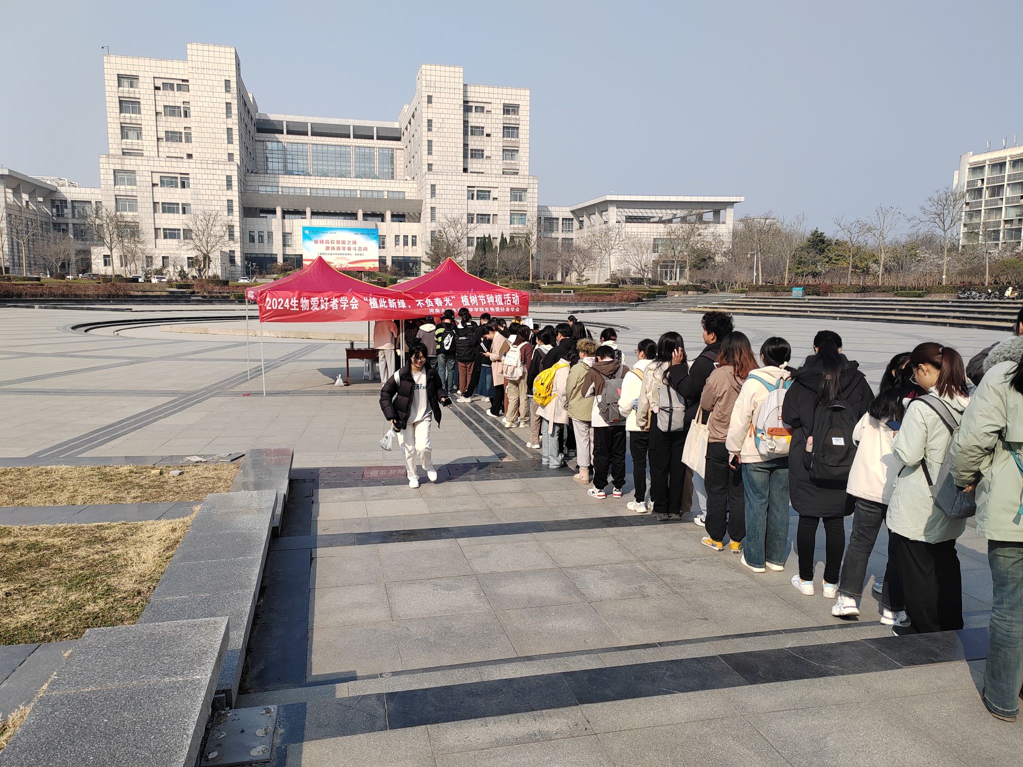 春暖花开,万物复苏,柳树抽出新绿、玉兰亭亭玉立,呈现出新的生机与活力。在三月植树月,永利集团304am登录生物爱好者学会在金明校区马可广场开展“‘植’此新绿,不负春光”植物种植活动,全校百余名同学参加此次活动。